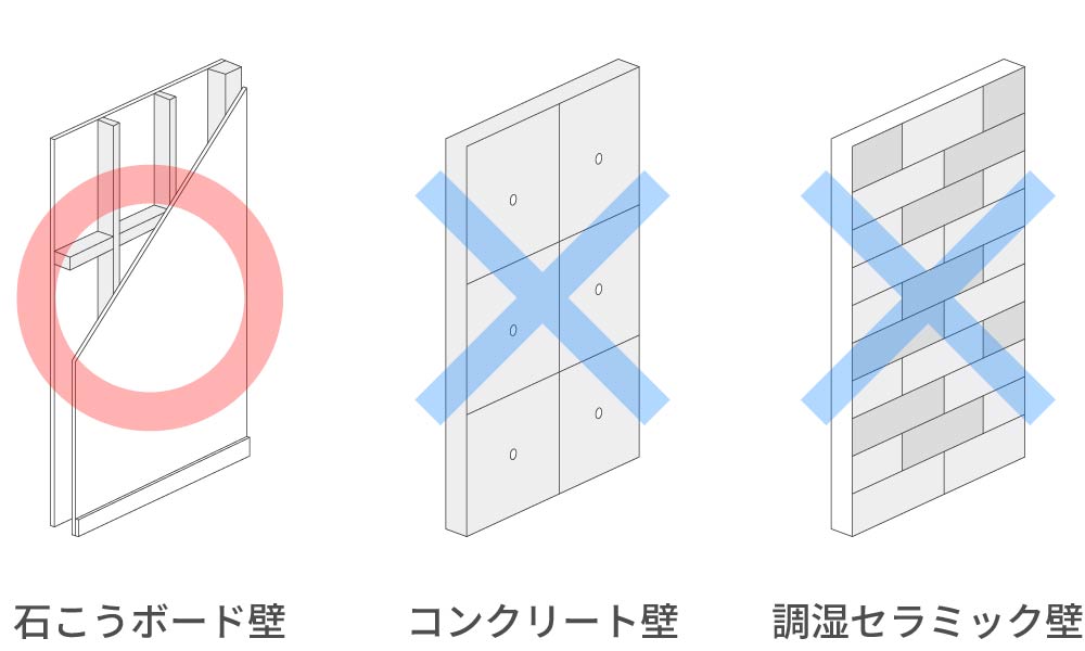 石こうボード壁の下地(間柱、木材)のない部分に使える?